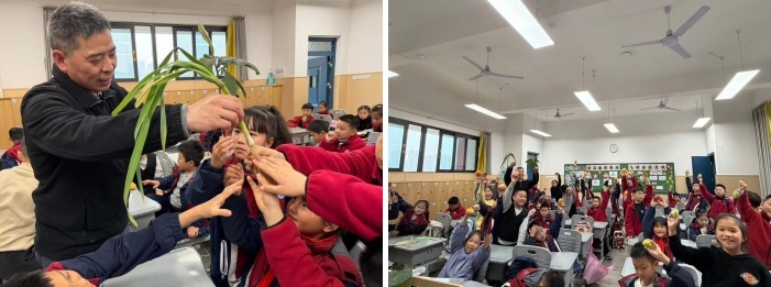 課堂上,通過近距離觀察植物標(biāo)本、參與趣味問答等環(huán)節(jié),同學(xué)們踴躍互動,展現(xiàn)出對大自然和未知世界強烈探索欲望。