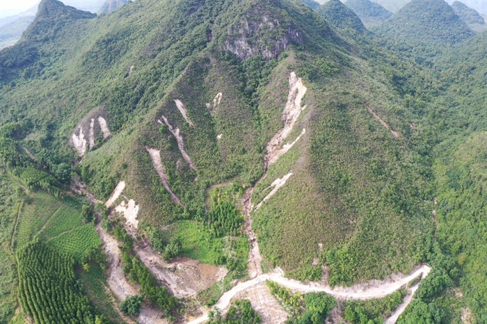環(huán)江縣大才鄉(xiāng)白云巖坡地滑坡掩埋農(nóng)田、危及公路