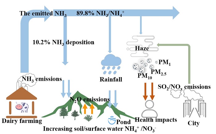 氨氣是大氣中含量最高的堿性氣體,與酸性氣體反應(yīng)會(huì)形成二次氣溶膠造成空氣污染。大氣中氨氣及其衍生物的干濕沉降也是大氣氮沉降的重要來源,并導(dǎo)致自然生態(tài)系統(tǒng)富營養(yǎng)化。近年來,國內(nèi)外有關(guān)通過減少氨氣排放來控制大氣氣溶膠污染和富營養(yǎng)化的呼聲越來越高。集約化養(yǎng)殖場是氨氣的重要排放源,氨氣排放后其如何在源周邊產(chǎn)生沉降并影響大氣氮的總沉降以及如何影響大氣氣溶膠PM2.5組成及濃度仍不清楚。