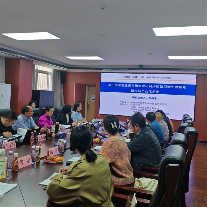 12月9日,中國(guó)科學(xué)院亞熱帶農(nóng)業(yè)生態(tài)研究所在南寧組織召開(kāi)廣西“尖鋒”行動(dòng)計(jì)劃項(xiàng)目“基于海洋漁業(yè)廢棄物資源化利用的新型微生物菌劑研發(fā)與產(chǎn)業(yè)化示范”實(shí)施方案研討會(huì)。項(xiàng)目負(fù)責(zé)人、亞熱帶生態(tài)所李德軍研究員,課題負(fù)責(zé)人和科研骨干等20余人參加會(huì)議。會(huì)議由廣西農(nóng)業(yè)科學(xué)院農(nóng)業(yè)資源與環(huán)境研究所副所長(zhǎng)劉永賢研究員主持。