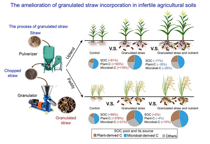 秸稈顆粒養(yǎng)分補(bǔ)充對(duì)貧瘠稻田和旱地土壤有機(jī)碳的影響與機(jī)制