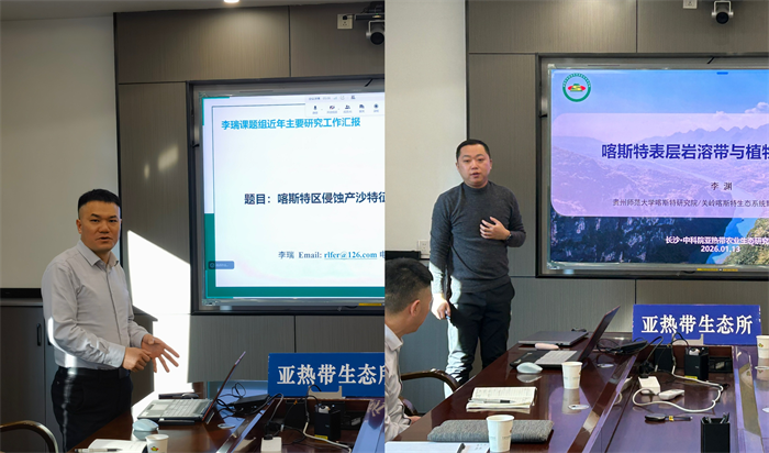 1月14日,貴州師范大學(xué)喀斯特研究院李瑞研究員、李淵副教授以國(guó)內(nèi)訪問學(xué)者身份到中國(guó)科學(xué)院亞熱帶農(nóng)業(yè)生態(tài)研究所陳洪松研究員團(tuán)隊(duì)開展學(xué)術(shù)交流。