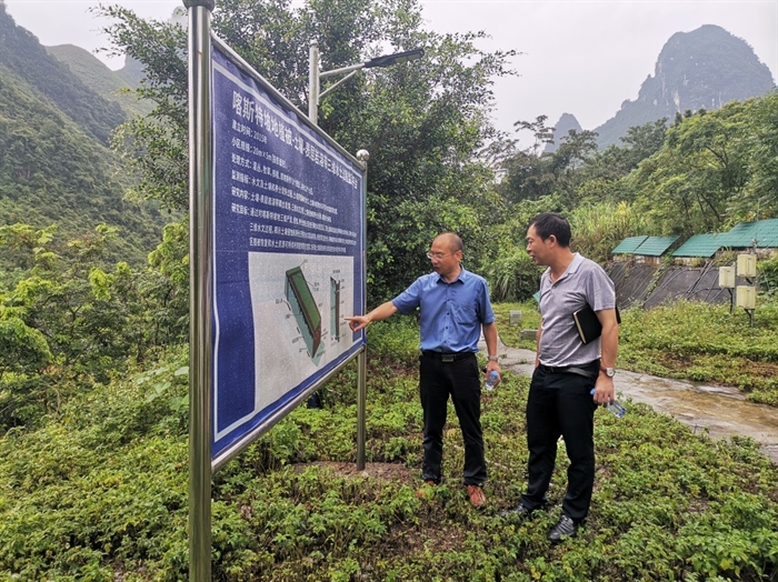 7月19日,中國(guó)地質(zhì)科學(xué)院巖溶地質(zhì)研究所副所長(zhǎng)趙小明等一行到中國(guó)科學(xué)院環(huán)江喀斯特生態(tài)系統(tǒng)觀測(cè)研究站考察調(diào)研。環(huán)江毛南族自治縣縣委常委、副縣長(zhǎng)(掛職),中國(guó)科學(xué)院亞熱帶農(nóng)業(yè)生態(tài)研究所何尋陽(yáng)研究員及環(huán)江站駐站職工等陪同調(diào)研。