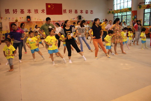 課堂上,青年職工和孩子們踩著音樂節(jié)拍,跟著體操老師一起進行形體熱身鍛煉;借助體操器械,在老師的悉心指導下,孩子們進行了翻滾、跑、跳等多元化形式的體操基礎(chǔ)技能訓練,家長們在一旁鼓勁加油,感受小孩成長的喜悅;孩子們在家長的幫助下,分組體驗了吊環(huán)、跳箱、蹦床、平衡木等項目,家長和孩子的親密度和配合度盡情展示。