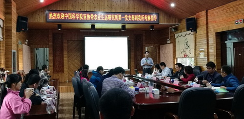 在龍州起義紀(jì)念館,全體黨員了解了龍州起義的歷史和意義,深切緬懷為新中國而拋頭顱灑熱血的革命先烈,重溫入黨誓詞,堅(jiān)定了共產(chǎn)黨員的信念,強(qiáng)化了為人民服務(wù)意識(shí)。在南亞熱帶所,支部成員參觀了紅心火龍果培育種植基地、甘蔗育種組培基地以及澳洲堅(jiān)果種植園等,認(rèn)真學(xué)習(xí)了廣西特色農(nóng)業(yè)產(chǎn)業(yè)的發(fā)展現(xiàn)狀和領(lǐng)先技術(shù)。南亞熱帶所所長陳海生詳細(xì)介紹了植物種植園產(chǎn)出的具體情況,如火龍果、澳洲堅(jiān)果、甘蔗、香蕉、鳳梨等主要培育作物及其技術(shù)方法,形成的行業(yè)標(biāo)準(zhǔn),每年申報(bào)的技術(shù)專利以及推廣種植的面積等內(nèi)容。肖峻博士作了題為“廣西石漠化治理工作及其相關(guān)研究成果”的學(xué)術(shù)報(bào)告,重點(diǎn)介紹了廣西石漠化治理工作中一系列成果和治理模式,并總結(jié)尚待解決的治理難點(diǎn),并詳細(xì)介紹了環(huán)江站在廣西喀斯特地區(qū)石漠化綜合治理工作上取得的一系列成果及其具體應(yīng)用。隨后的座談會(huì)上,雙方在喀斯特峰叢洼地石漠化治理與特色農(nóng)林作物種植技術(shù)及推廣、農(nóng)產(chǎn)品生態(tài)效益評(píng)價(jià)、支部交流等方面的合作上達(dá)成一致,下一步將繼續(xù)推動(dòng)雙方優(yōu)勢(shì)互補(bǔ),開展深入合作,為廣西喀斯特貧困地區(qū)脫貧攻堅(jiān)有關(guān)農(nóng)業(yè)生態(tài)產(chǎn)業(yè)發(fā)展提供科技支撐。