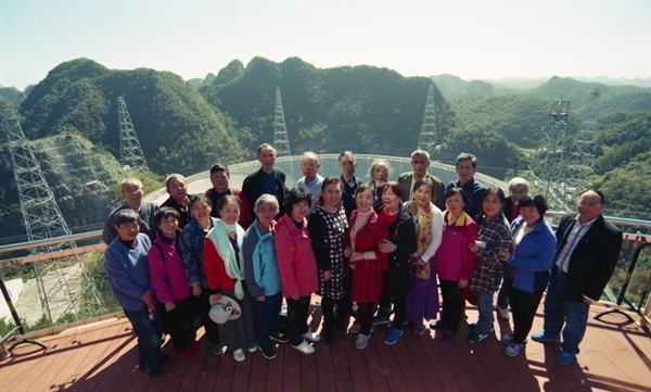 在參觀“天眼”的過程中,大家不僅一睹了“天眼”的神奇與壯美,更為以南仁東為首席科學家們和建設(shè)者們?yōu)榕实鞘澜缈茖W高峰、創(chuàng)新我國的天文科學事業(yè)而付出的努力和艱辛所折服。特別是南仁東先生為了這一國家重點工程的建成,毅然放棄了國外優(yōu)越的生活待遇,懷揣要讓中國射電天文進入世界第一梯隊,為下一代科學家建設(shè)好FAST的雄心壯志,率領(lǐng)他的科研團隊克服了工作中的重重困難,即使在他身患重病之后仍然忘我工作在第一線,歷經(jīng)22年終于建成了“天眼”的優(yōu)秀事跡使我們每一位參觀者都受到了一次深刻的思想教育。大家表示作為一名退休黨員干部和科技工作者,一定要學習南仁東胸懷祖國服務(wù)人民的愛國情懷、淡泊名利無私奉獻的精神,自覺為祖國富強和民族復興做出自己的應有貢獻。