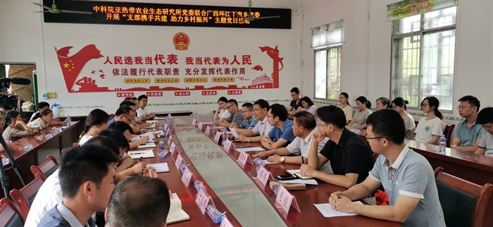 9月15日,環(huán)江站支部與環(huán)江縣下南鄉(xiāng)黨委開展以“支部攜手共建,助力鄉(xiāng)村振興”為主題的共建活動(dòng)。會(huì)上,亞熱帶生態(tài)所環(huán)江站扶貧幫扶工作對接的波川村、中南村和下塘村黨支部書記分別介紹了扶貧攻堅(jiān)以來村里生態(tài)環(huán)境、人民生活水平和經(jīng)濟(jì)條件的改善情況。下南鄉(xiāng)黨委書記覃良傘認(rèn)為,下南鄉(xiāng)20年來的巨大變化離不開亞熱帶生態(tài)所的大力支持,介紹了下南鄉(xiāng)創(chuàng)立農(nóng)產(chǎn)品品牌的計(jì)劃并希望后續(xù)能給予支持。環(huán)江縣副縣長唐鍔表示,亞熱帶生態(tài)所在環(huán)江縣扶貧攻堅(jiān)工作和毛南族整族脫貧過程中作出了重大貢獻(xiàn),高度評價(jià)了環(huán)江站的同志們扎根喀斯特大石山區(qū)艱苦環(huán)境中開展科技研發(fā)和扶貧工作的精神,同時(shí)指出當(dāng)前鄉(xiāng)村振興戰(zhàn)略實(shí)施階段所面臨的主要問題,對雙方共建工作提出了期望目標(biāo)。王克林簡要介紹了亞熱帶生態(tài)所概況、黨建工作及服務(wù)國家戰(zhàn)略、助力鄉(xiāng)村振興等工作情況,指出今后的合作中,應(yīng)結(jié)合面源污染治理、鄉(xiāng)村生態(tài)服務(wù)功能提升、生態(tài)產(chǎn)業(yè)培育等科研活動(dòng),解決生態(tài)農(nóng)業(yè)結(jié)構(gòu)調(diào)整過程中的實(shí)際問題,為喀斯特地區(qū)生態(tài)農(nóng)業(yè)產(chǎn)業(yè)優(yōu)化調(diào)整、農(nóng)業(yè)用水規(guī)劃、固碳增匯技術(shù)應(yīng)用提供范例,助推區(qū)域農(nóng)業(yè)生態(tài)發(fā)展和促進(jìn)地方經(jīng)濟(jì)建設(shè),真正將論文寫在環(huán)江大地上。環(huán)江站支部書記岳躍民代表環(huán)江站向?qū)趲头龃宓狞h員和基層干部進(jìn)行了慰問,感謝他們在環(huán)江站和下南鄉(xiāng)合作開展的科技扶貧工作中起到的重要作用。