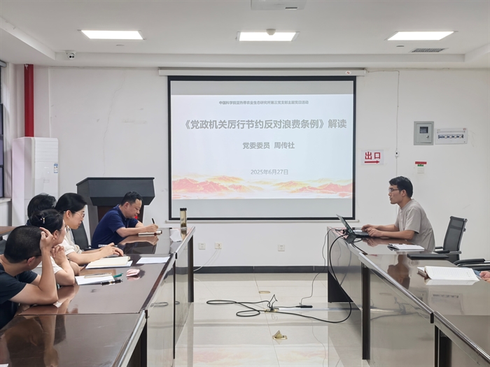 6月27日,中國(guó)科學(xué)院亞熱帶農(nóng)業(yè)生態(tài)研究所第三黨支部開展“學(xué)習(xí)貫徹習(xí)近平新時(shí)代中國(guó)特色社會(huì)主義思想 加強(qiáng)中央八項(xiàng)規(guī)定精神警示教育”主題黨日?;顒?dòng)由支部書記孔祥峰主持。