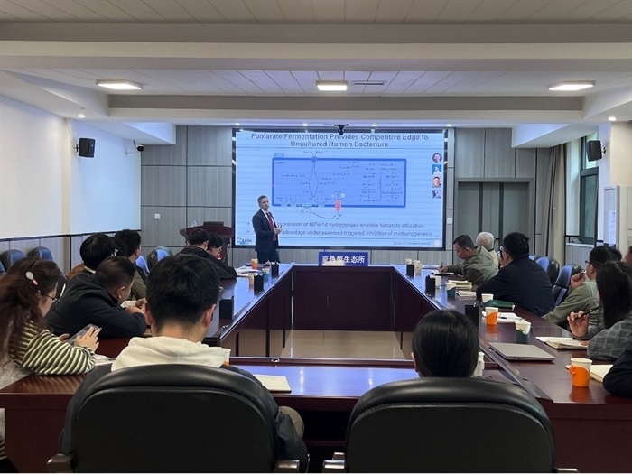 11月14日,MATTHIAS HESS出席了在亞熱帶農(nóng)業(yè)生態(tài)研究所舉行的“湘智興湘·科技人才沙龍—農(nóng)業(yè)生態(tài)與鄉(xiāng)村振興青年人才專場”活動,并作了題為“Learning from Microbes to Improve Agriculture & the Environment”的報告,從自然界微生物群落與功能、微生物基因組、微生物精準(zhǔn)基因編輯技術(shù)、微生物功能分工與高效分解策略、碳水化合物活性酶的鑒定等方面系統(tǒng)闡述了微生物在生態(tài)農(nóng)業(yè)轉(zhuǎn)型和區(qū)域生態(tài)恢復(fù)等全球熱點問題中的研究與應(yīng)用,并與參會人員深入互動交流。
