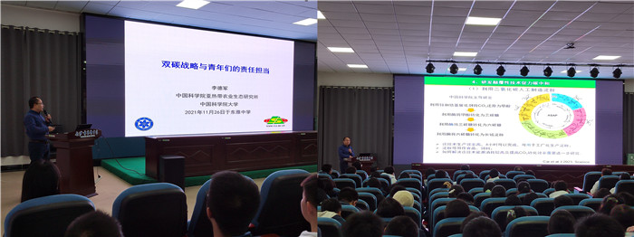 11月26日,中國科學院亞熱帶農業(yè)生態(tài)研究所李德軍研究員為長沙市東雅中學高一年級師生帶來了一場以《雙碳戰(zhàn)略與青年們的責任擔當》為主題的科普講座。