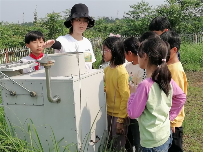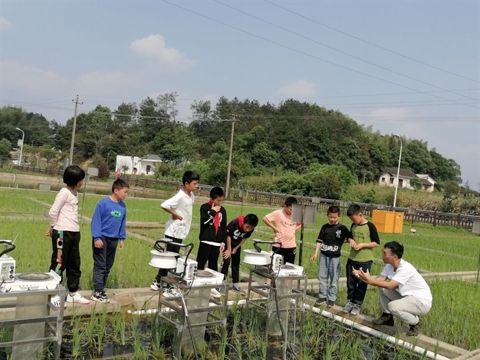 亞熱帶生態(tài)所張樹楠副研究員、張苗苗工程師、楊正宇碩士、夏夢華博士帶領(lǐng)學(xué)生們以“植物種類知多少”“稻田溫室氣體采集體驗(yàn)”“水質(zhì)的奧秘解碼”“探秘微觀生態(tài)系統(tǒng)”等為科學(xué)探索主題,依托綠狐尾藻人工濕地、氣象(大氣沉降)觀測園、溫室氣體排放監(jiān)測靜態(tài)箱、稱重式蒸滲儀觀測系統(tǒng)等場地和觀測設(shè)備,開展了長沙站植物多樣性調(diào)查、現(xiàn)場操作掌握水質(zhì)檢測的方法和過程,了解不同水體中水質(zhì)參數(shù)的差別;了解稻田生態(tài)系統(tǒng)的組成,了解稻田溫室氣體排放的對(duì)環(huán)境的影響,認(rèn)識(shí)到研究稻田溫室氣體排放的重要性;了解生態(tài)系統(tǒng)的主要構(gòu)成主體,理解生態(tài)系統(tǒng)中的非生物環(huán)境及生命系統(tǒng)之間的聯(lián)系和作用方式,增強(qiáng)學(xué)生對(duì)生態(tài)系統(tǒng)的理解。