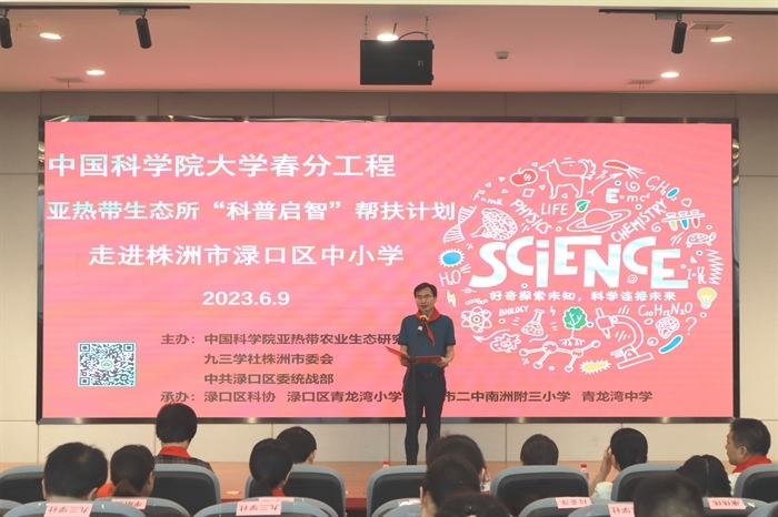 6月9日,中國科學院亞熱帶農業(yè)生態(tài)研究所10位科普志愿者走進株洲市青龍灣小學、株洲市二中南洲附三小學、青龍灣中學為近1000名學生開展了豐富多彩的科普活動。亞熱帶生態(tài)所陳洪松副所長參加活動啟動儀式并致辭。