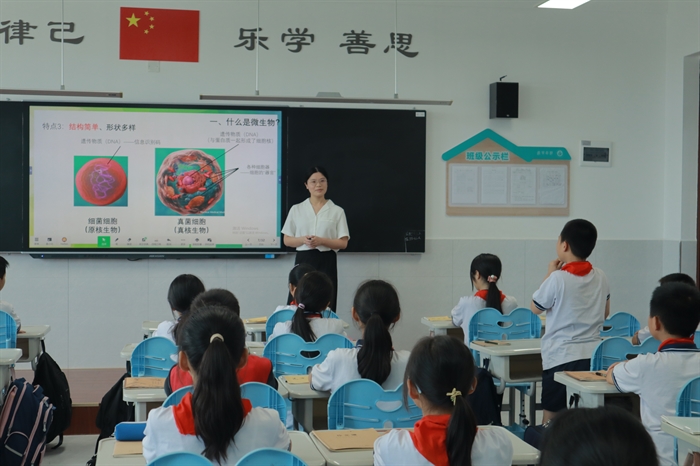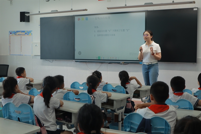 微生物與我們有什么關系?我們應該如何對待微生物?剛出生的小牛有多重?所有的奶牛都產奶嗎?巖石是如何形成的?巖石硬度不一樣的原因是什么?大米都有什么顏色?如何區(qū)別粳稻和秈稻?為什么韭菜是綠色而韭黃卻是黃色?水對植物生長有什么作用?你見過水稻開花?水稻花粉有什么作用?.......活動現場,來自亞熱帶生態(tài)所的張夢雪、劉梓欣、賴佳鑫等科普志愿者為15個班的小學生們開展了精彩的科普知識講解。同學們踴躍發(fā)言,老師們答疑解惑,動手操作環(huán)節(jié)更是讓科普課堂妙趣橫生,同學們在趣味滿滿的課堂中拓寬了視野,激發(fā)了求知欲和想象力。