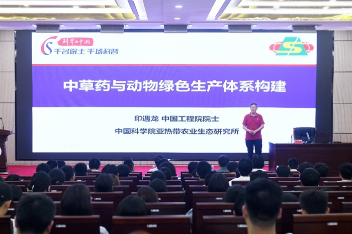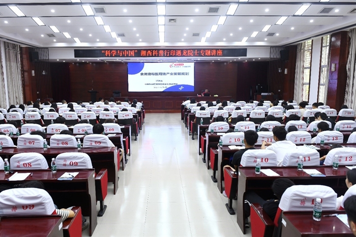 中國工程院院士、亞熱帶生態(tài)所印遇龍研究員在湘西民族職業(yè)技術(shù)學(xué)院和吉首大學(xué)分別作題為《食用豬和醫(yī)用豬產(chǎn)業(yè)發(fā)展規(guī)劃》《中草藥與動物綠色生產(chǎn)體系構(gòu)建》的科普報(bào)告,分享食用豬和醫(yī)用豬產(chǎn)業(yè)發(fā)展現(xiàn)狀、市場前景、發(fā)展瓶頸及有效解決路徑,中草藥在養(yǎng)殖中應(yīng)用的歷史,天然植物飼料在健康養(yǎng)殖中的應(yīng)用,我國中草藥資源發(fā)展問題及解決辦法,中草藥在養(yǎng)殖業(yè)應(yīng)用的前景展望等內(nèi)容。