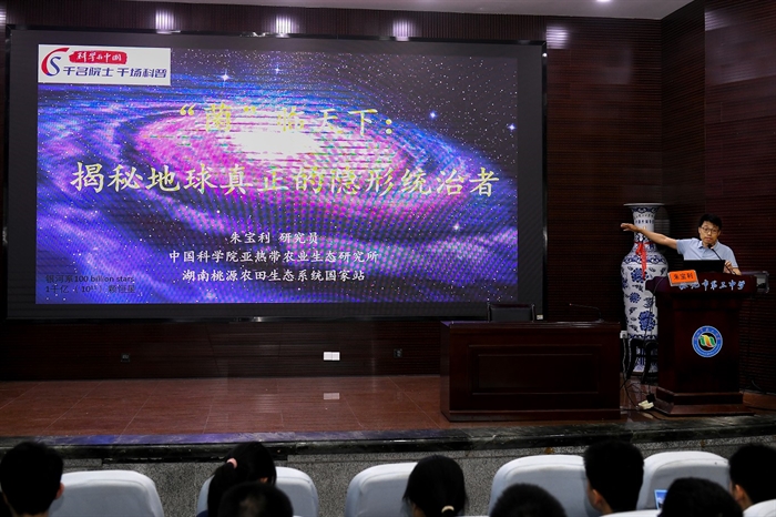 朱寶利研究員在懷化市第三中學(xué)作題為《“菌”臨天下:揭秘地球真正的隱形統(tǒng)治者》的科普報(bào)告。他在報(bào)告中介紹,在與人類文明的交匯中,微生物扮演著雙重角色,它們既是腸道健康的隱形指揮官,又是生物技術(shù)革命的靈感源泉,也曾以黑死病等瘟疫事件深刻改寫人類歷史。未來,從微生物燃料電池到利用藍(lán)藻進(jìn)行太空生態(tài)系統(tǒng)構(gòu)建,這些“微觀工程師”有望引領(lǐng)能源革命與星際生存。