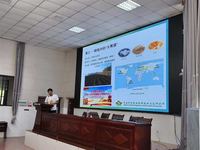 在教仁中學(xué),張文釗副研究員以“土壤的自我介紹”“土壤形成的打怪升級(jí)之路”“土壤類型知多少”“土壤也有生老病死”以及一些土壤調(diào)查研究過程中的趣味小故事帶領(lǐng)同學(xué)們走進(jìn)土壤的奇妙世界,揭開它平凡外表下的科學(xué)奧秘與生態(tài)價(jià)值,讓同學(xué)們了解土壤,意識(shí)到保護(hù)土壤的必要性,成為土壤的守護(hù)者。