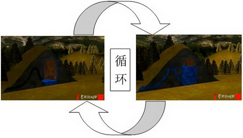 山體中有一個儲水空間,這個儲水空間不會很大,在儲水空間中的水高度不會高于虹吸管道的最高點時,水流以出滲為主;當儲水空間中的水高度大于等于虹吸管道的高度的時候,以虹吸出流為主。所以就形成了多潮變化,多周期型的變化。當上游所補給的水源穩(wěn)定時,泉水便會一會流出一會停止。當上游補給水來源不穩(wěn)定的時候,會出現(xiàn)相當長的一段時間不會大量出水。這也就是為什么有的人能喊出水,而有的人喊不出水的情況,泉并不能分辨聲音,也沒有泉對人有喜好選擇的神話說法。
