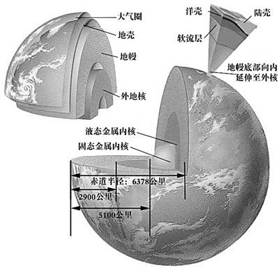三股熱流在地球體內(nèi)涌動(dòng),使剛剛固化不久的地球再次熔化,溫度達(dá)到1000℃甚至更高。在地下400至800千米處,溫度甚至超過(guò)了鐵的熔點(diǎn)。固體巖石中的鐵、鎳等金屬率先熔化,由于這些元素的密度很大,在重力的作用下,鐵、鎳形成熔滴,向地心下沉,最終在地心形成了鐵鎳成分的地核;那些比較輕的巖石物質(zhì)——如硅、鋁、鎂等,向上浮到地表一帶,冷卻后形成了地殼。在地殼和地核之間的物質(zhì)形成了地幔。