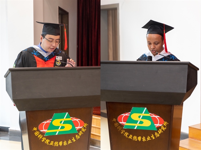 畢業(yè)生齊鳴作為畢業(yè)生代表發(fā)言,他回望自己在國科大和研究所奮斗的六年,回首做實(shí)驗(yàn)、讀文獻(xiàn)、寫論文的難忘日夜,用感恩、奮斗和祝福三個(gè)關(guān)鍵詞表達(dá)了不舍之情,并表示將牢牢記住國科大的“博學(xué)篤志,格物明德”的校訓(xùn)和研究所“練內(nèi)功臥薪嘗膽 圖創(chuàng)新眾志成城”的所訓(xùn),繼續(xù)在科研路上奮斗,追逐青春理想,以青春之我奮斗之我,在青春賽道上奔跑,爭取跑出好成績。留學(xué)生代表Kefyalew(強(qiáng)大)發(fā)言,他向中國、國科大和悉心培養(yǎng)的研究所表達(dá)了誠摯的感激,并表示來中國留學(xué)是他最美好的回憶,很感謝老師的教導(dǎo)和同學(xué)們的關(guān)照,并保證在今后的生活中,將在中國所學(xué)到的知識(shí)運(yùn)用實(shí)踐來回報(bào)老師、學(xué)校和社會(huì)。