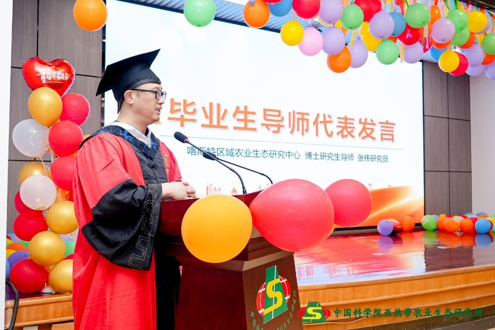喀斯特區(qū)域農(nóng)業(yè)生態(tài)研究中心博士研究生導(dǎo)師張偉作為導(dǎo)師代表發(fā)言。他向同學們分享了自己一路走來的個人感悟,鼓勵同學們腳踏實地、不斷進步,在新的征程中砥礪前行、踔厲奮進,不負時代不負韶華。
